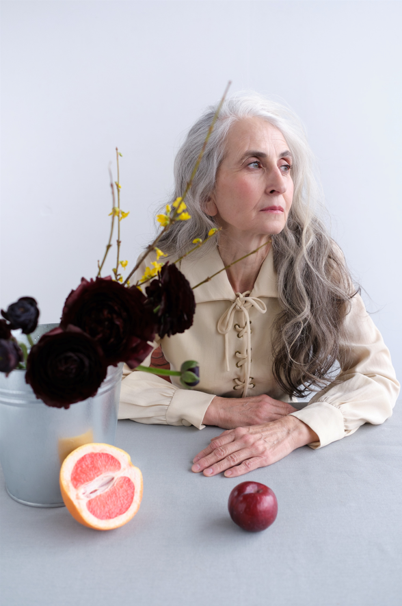 Нашей задачей было отобразить красоту возраста. В основу концепции легло сравнение распускающегося цветка и старения человека.